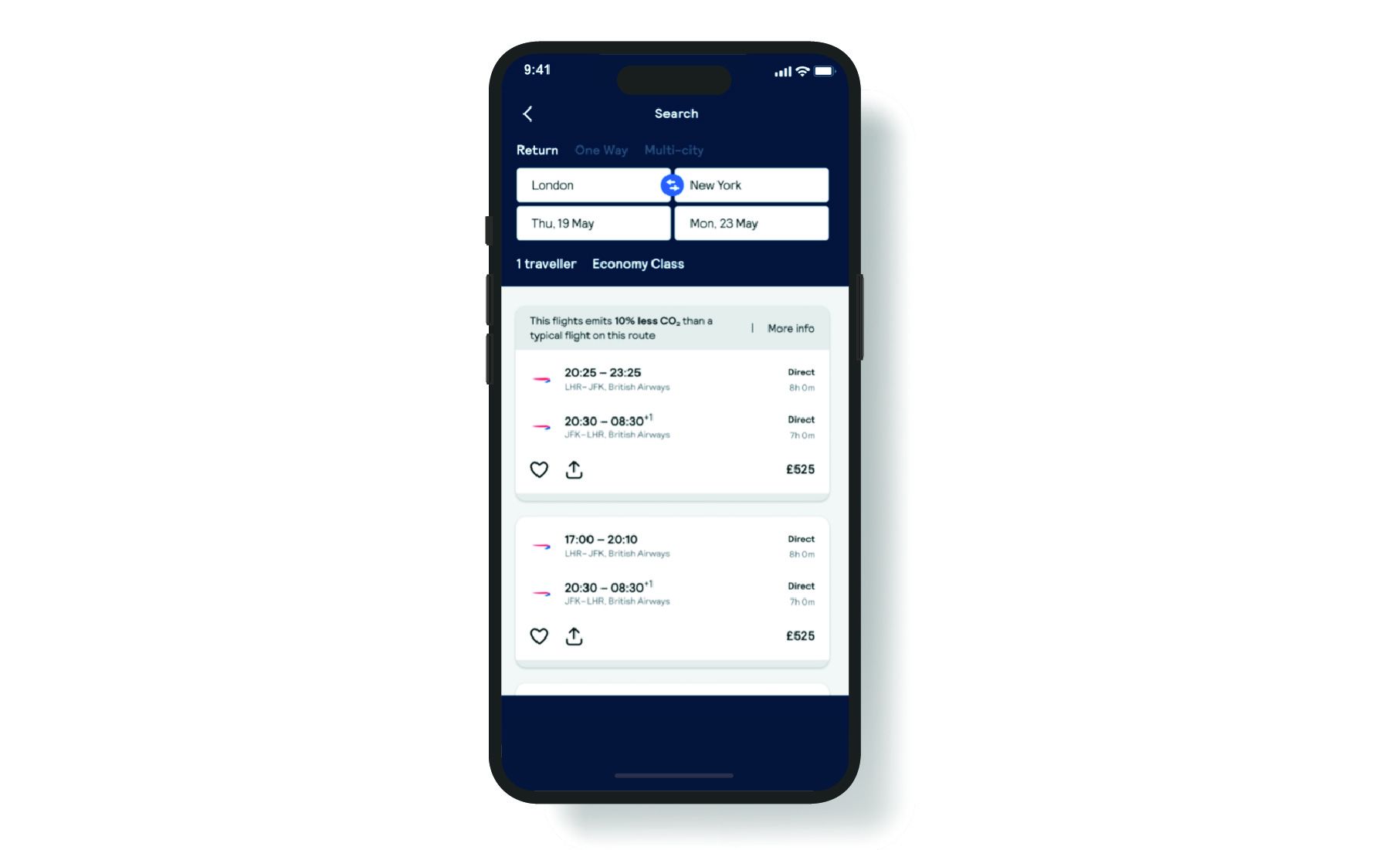 Green fares display on Skyscanner