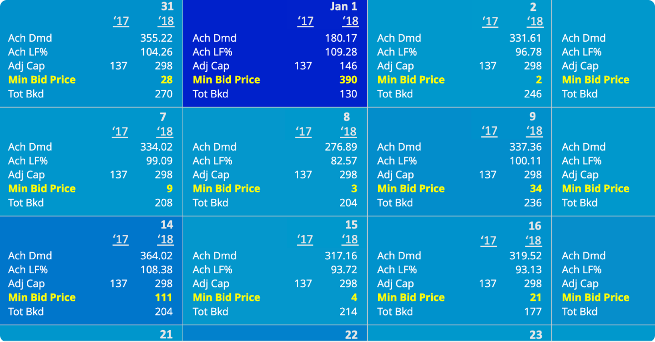Whether you operate a pure point-to-point network or a hybrid model, PROS RM delivers the forecasting precision and leg-based optimization needed to manage price-sensitive markets with confidence. Understand demand patterns at the right level of detail and make smarter availability decisions across every departure with advanced bid price and AU control.